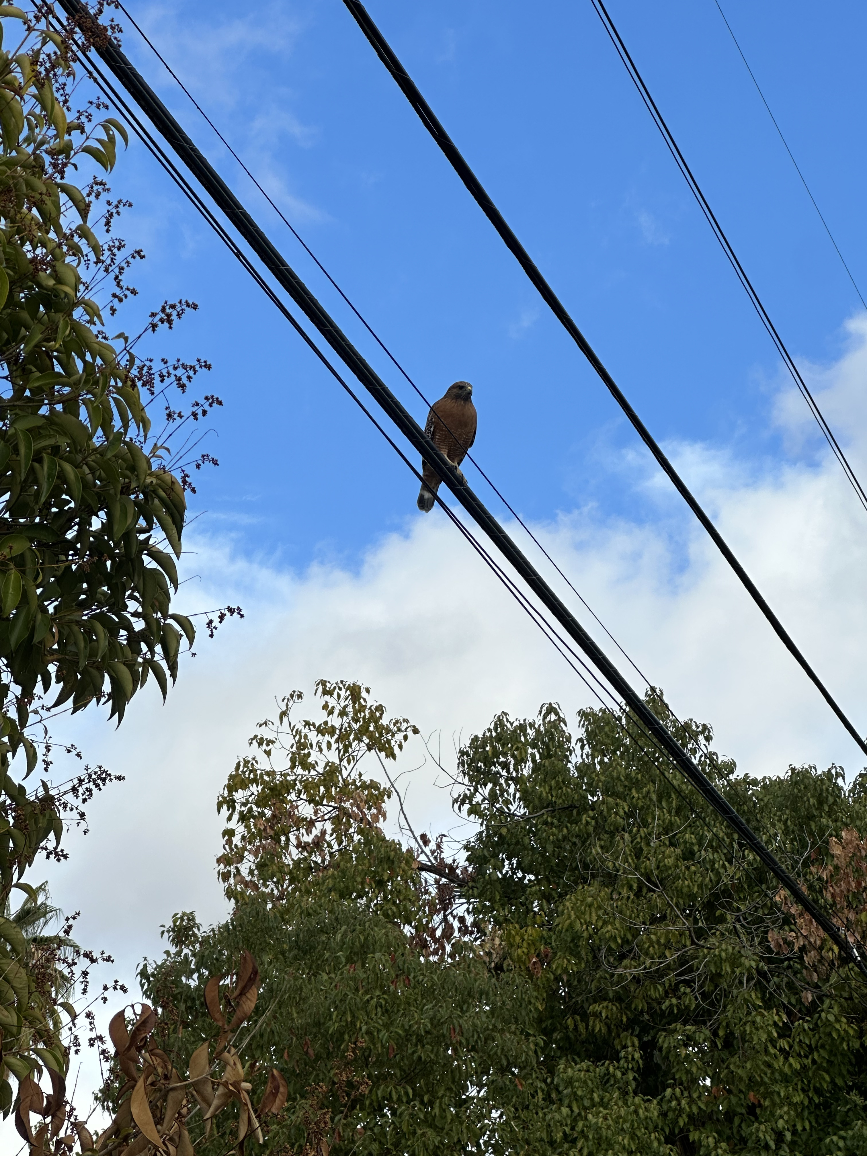 There was a little red-tailed hawk that was sitting on a powerline, with a shaken expression on his face. Perhaps this was one of his first storms and was left tired from the gusty breeze.