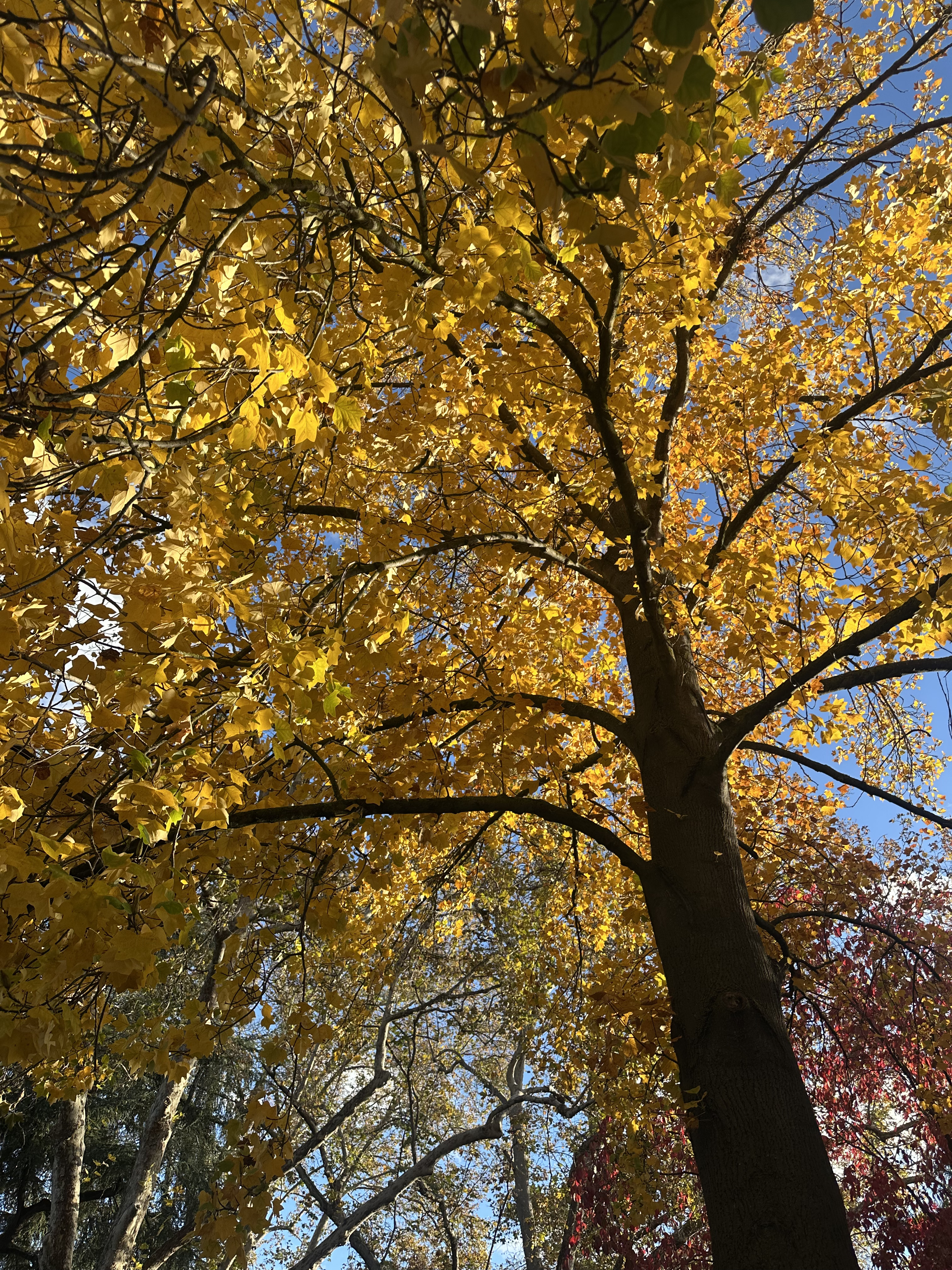 There was a beautiful sycamore (I think) tree that had leaves like honey, radiating a warm, amber glow beneath them.